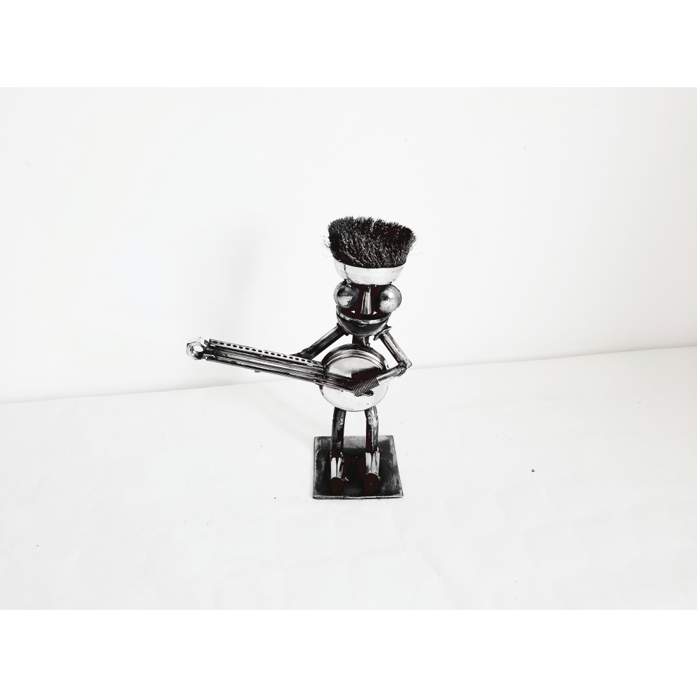 Deze instrumentalist oogt mental, maar dit grappige beeldhouwwerk zou een geweldig cadeau zijn voor iedereen die graag gitaar speelt.