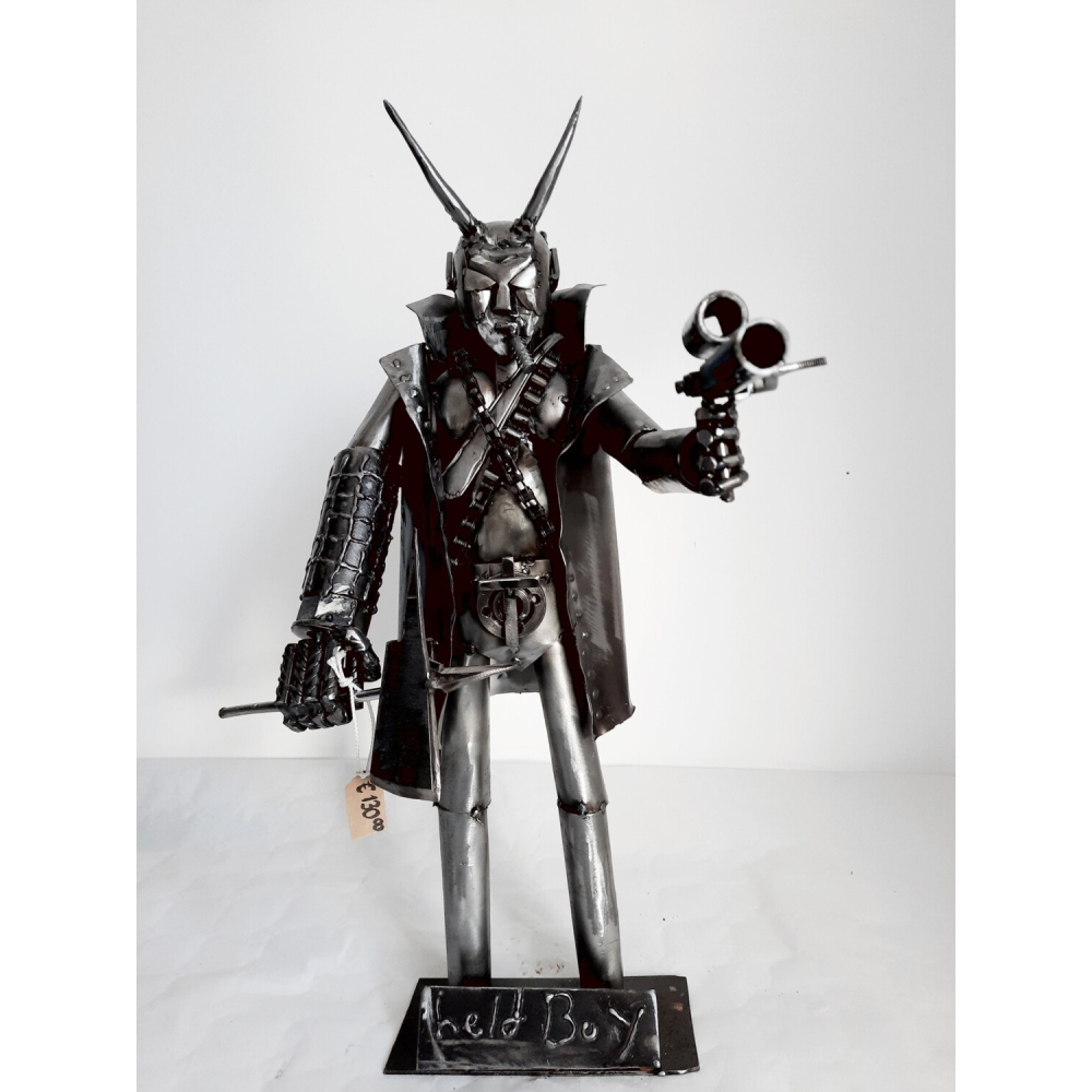"Hellboy" is geïnspireerd op Hellboy (komisch personage, Amerikaanse fantasy-actiefilm). In de films worden zijn hoorns meestal weggevijld. Als zijn hoorns groeien, brengen ze zijn agressie terug. Ik vond het uiterlijk van hem mooier met hoorns, dus daarom heb ik ze toegevoegd.